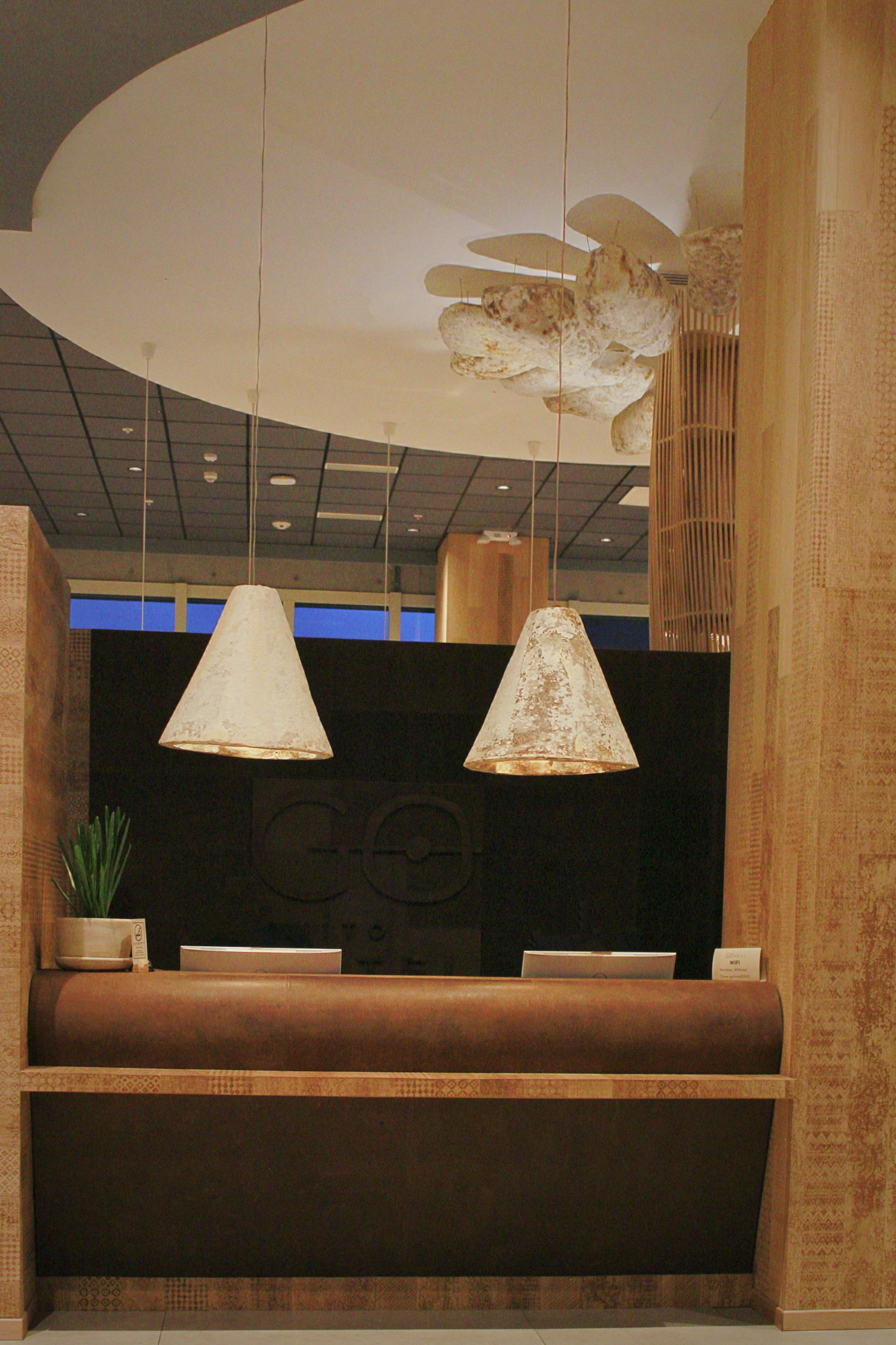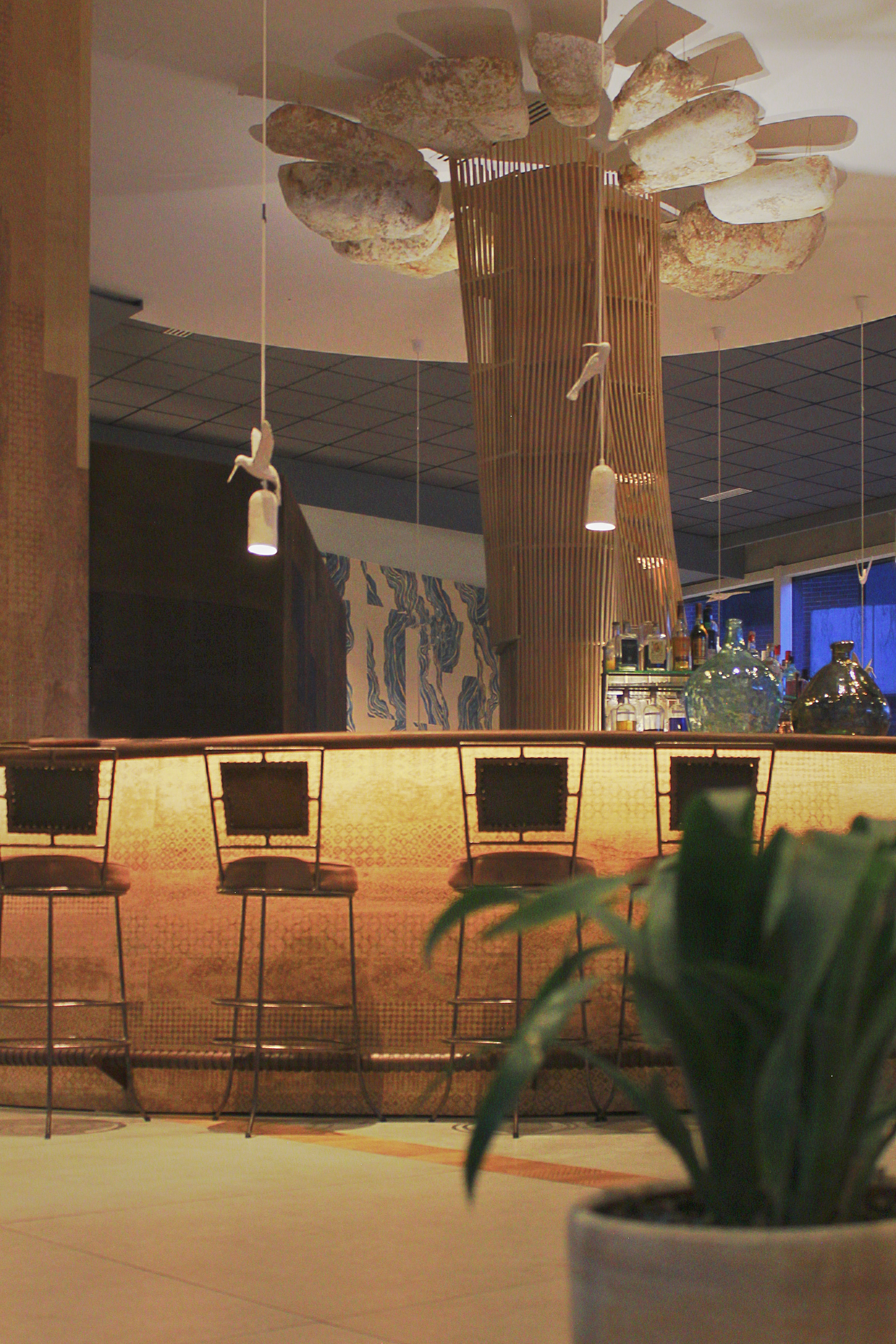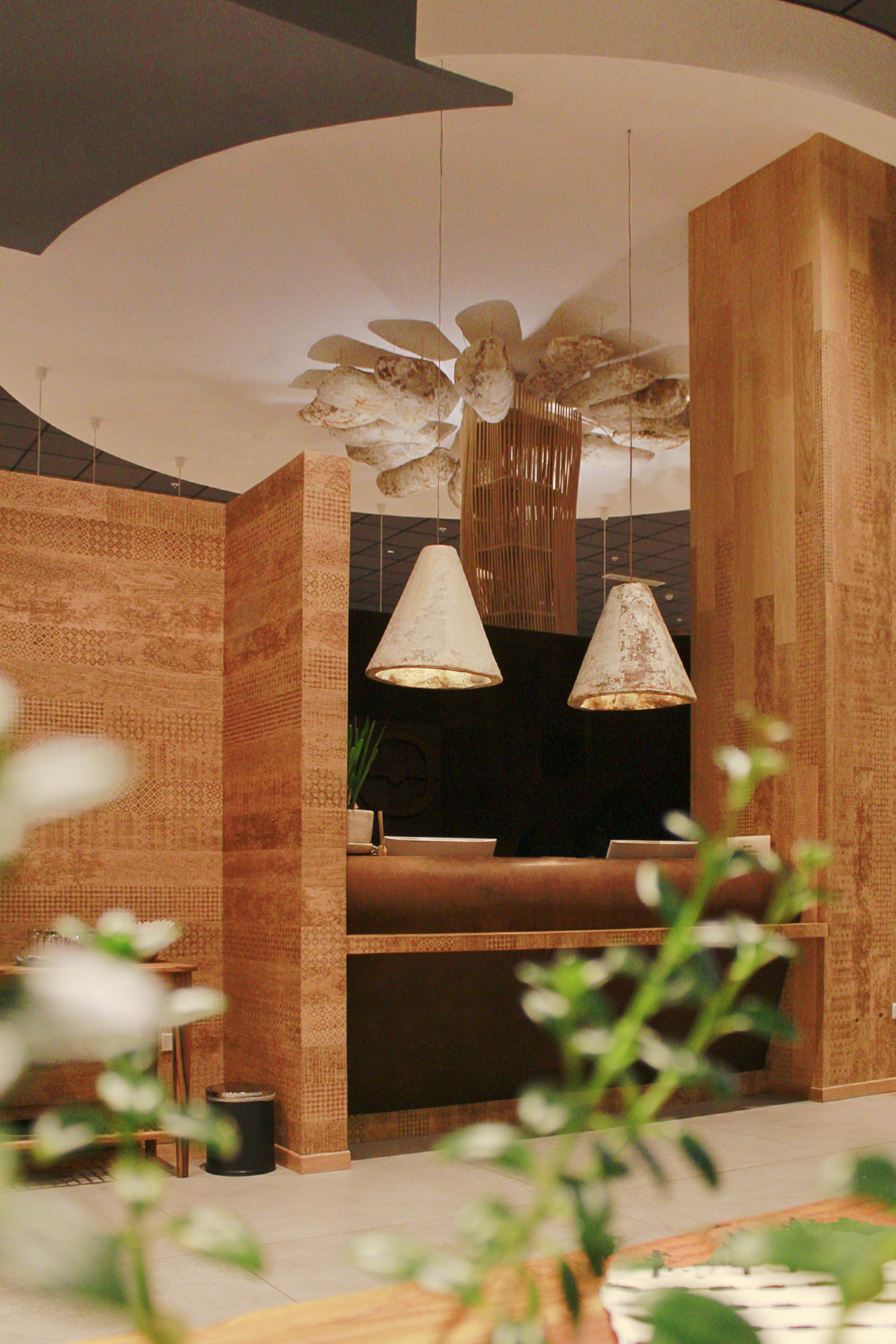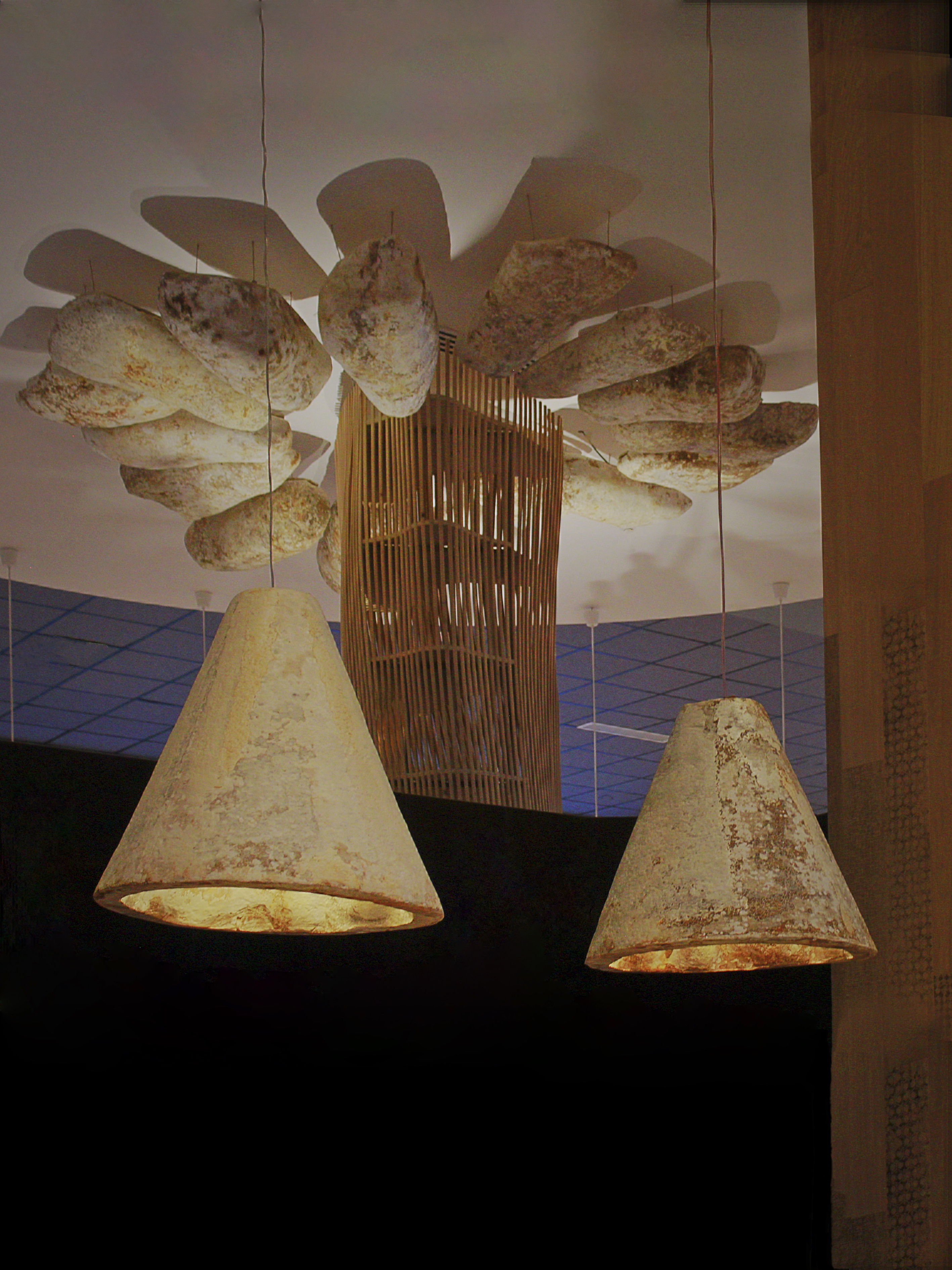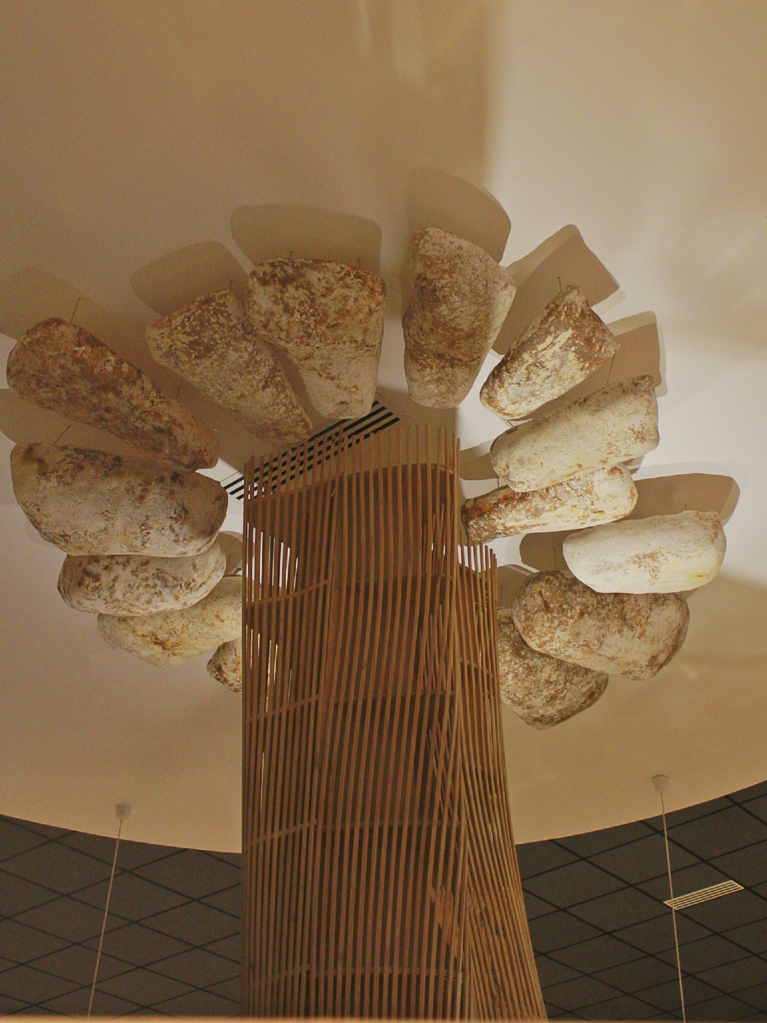 Instalación radial en el tumbado inspirada en la forma de los «hongos de ceniza» de una erupción volcánica